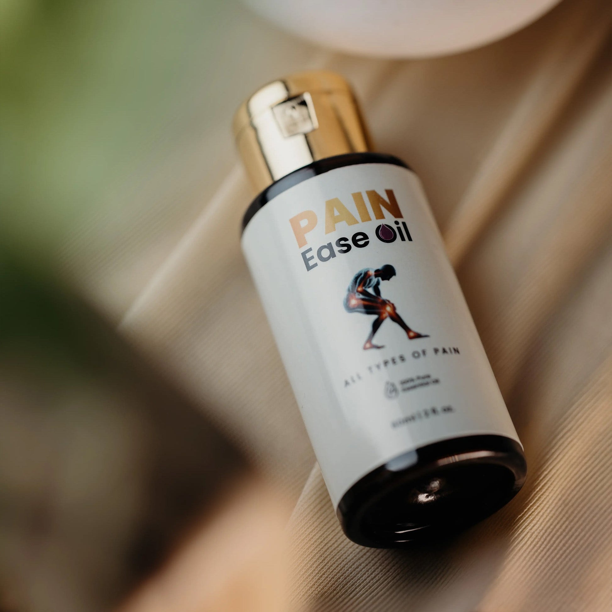 Our Pain Ease Essential Oil is a natural solution for sore muscles and joints, combining eucalyptus, clove, and cinnamon for effective pain relief and reduced inflammation. The non-sticky formula absorbs quickly, offering targeted comfort with no need for excessive rubbing. Ideal for aromatherapy, it promotes relaxation and rejuvenates your body the Ayurvedic way.